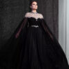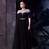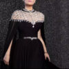 Black Abaya Style Crystal Neck Evening Gown, beautifully hand made together with crystal bead patterns on the neckline with empire waistline this comes with padded bust.