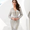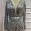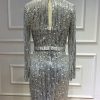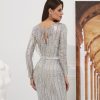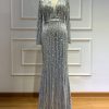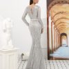 Silver Heavily Beaded Mermaid Party Gown, beautifully hand made together with sequin beaded patterns on the dress with empire waistline this comes with padded bust.