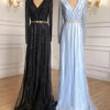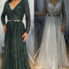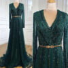 A Line Heavily beaded full sleeve Evening Dress, beautifully hand crafted together with beaded crystal work patterns all over the dress.