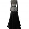 Amira Black High Neck A-line Beaded Evening Dress, beautifully hand made together with crystal bead patterns on the dress with empire waistline this comes with padded bust.