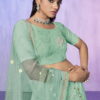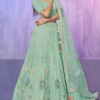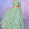 Aqua heavy embroidered bridal lehenga choli, made with thread and zarkan work. Comes with matching net lehenga, choli and net dupatta.