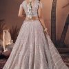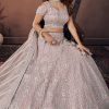 Baby pink heavy embroidered net bridal lehenga choli, hand made with thread, sequins and zarkan work. Comes with matching georgette lehenga, choli and net dupatta.