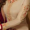 Beige Georgette Straight Cut Suit. The suit is in beige georgette with embroidered patterns on the yoke, sleeves and lower part of the kameez. Comes with matching bottom and floral print dupatta.
