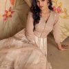 Beige sequin thread Anarkali gown, made with sequence and embroidered work. Comes with matching top and net dupatta. Does not come with trouser.
