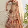 Beige smooth silk woven lehenga choli crafted with royal themed print, stone and mirror work. Comes with matching lehenga choli and dupatta.