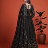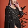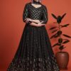 Black embroidered anarkali suit made with sequins and thread work. Comes with matching top, bottom and dupatta.