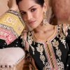 Black embroidered chinon palazzo pant suit made with thread zari work. Comes with matching top, bottom and dupatta.