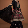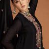 Black embroidered gharara style suit made with thread and zari patch border work. Comes with Top, bottom and dupatta.