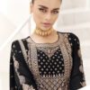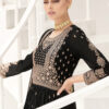 Black floor length embroidered anarkali suit made with thread zari sequin work. Comes with matching top, bottom and dupatta.