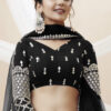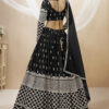 Black georgette embellished lehenga choli, designed with sequin zari and foil mirror work. Paired with matching blouse and dupatta.