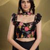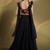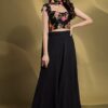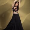 Black georgette lehenga choli made with thread and sequins work. Comes with matching choli and dupatta.