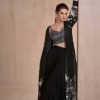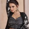 Black palazzo suit with crop top & shrug, made with thread zari, and sequin work. Comes with matching top, bottom and shrug.