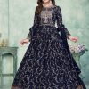 Blue Abaya style georgette embroidered anarkali suit, made with resham work and patch border with touch up patterns on the yoke and lower part of the kameez.