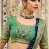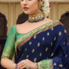 Blue art silk embroidered wedding saree, designed with thread, zari work enhanced by fancy lace border. The saree comes with a contrast matching double blouse.
