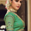 This will fit bust and waist sizes 32,34,36,38,40,42,44 (UK sizes 6-18). Blouse length 14-15″ max. Slight variation in colour is possible. Model accessories and latkans not included.