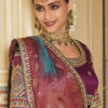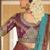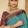 Blue art silk embroidered wedding saree, designed with thread, zari work enhanced by fancy lace border. The saree comes with a contrast matching double blouse.