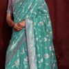 Blue banarasi silk embroidered wedding saree, designed with thread and intricate border work. The saree comes with a matching blouse.