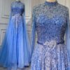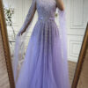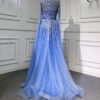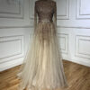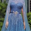 Cape sleeved Beaded Evening Gown Dress beautifully hand crafted together with embroidered beaded work patterns all over the dress.