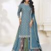 Blue chinon long choli lehenga suit made with thread zari sequin work. Comes with matching top, skirt and dupatta.