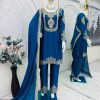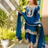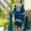 blue color Beautiful Partywear Dress in Chinon SIlk Fabric