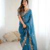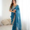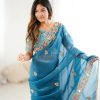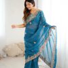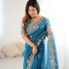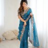 Sari Fabric: Premium Crunchy Silk With Heavy Embroidery Threads Codding & Sequins Work
