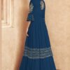 Blue Embroidered Jacket Style Anarkali Gown made with thread and patch border work. Comes with Top inner and jacket. No dupatta.