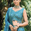 Blue embroidered wedding lehenga choli designed with intricate mirror work. The outfit comes with a lehenga, choli and a dupatta.