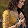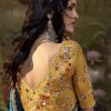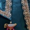 Blue embroidered wedding saree, embellished with sequin stone and thread work enhanced by fancy tassels. The saree comes with a matching contrast blouse.
