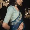 Blue embroidered wedding saree, designed with sequin stone and zarkan work enhanced by fancy tassels. The saree comes with a contrast colour matching blouse.