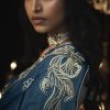 This will fit bust and waist sizes 32,34,36,38,40,42,44 (UK sizes 6-18). Blouse length 14-15″ max. Slight variation in colour is possible. Model accessories and latkans not included.