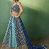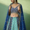 Blue georgette embroidered lehenga choli, made with thread, sequin work. Comes with a matching georgette lehenga, choli and dupatta.