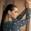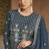 Blue Grey georgette embroidered anarkali suit made with thread zari sequin work at front. Back bottom will come plain. Comes with matching top, bottom and dupatta.