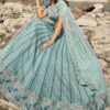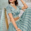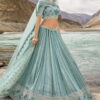Blue heavily embellished bridal lehenga choli designed with hand made mirror, cutwork and zarkan heavy work. The outfit comes with a georgette lehenga, choli and net dupatta.