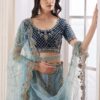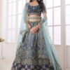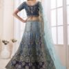 Blue heavy embroidered bridal lehenga choli made with thread, dori, stone and sequins. Comes with matching lehenga choli and dupatta.