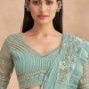 Blue lehenga style saree with belt crafted with sequin and thread embroidery work. The saree comes with a unstitched matching blouse.
