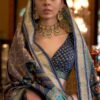 Blue rajwadi silk woven lehenga choli crafted with royal themed print, stone and zari work. Comes with matching lehenga choli and dupatta.