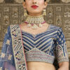 Blue silk bridal lehenga choli, designed with sequin, zari work, hand embroidered paired with matching embroidered blouse and net dupatta.