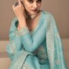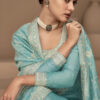 Blue Silk Palazzo Pant Suit made with thread and zari patch border work. Comes with Top, bottom and dupatta.
