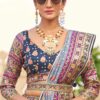 Blue smooth silk woven lehenga choli crafted with royal themed print, stone and mirror work. Comes with matching lehenga choli and dupatta.