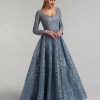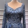 Blue Sweetheart Neck Beaded Evening Dress is beautifully weaved together with beaded crystal work and patterns over the dress with empire waistline this comes with bra padded.