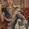 Blue traditional silk saree crafted with print work. The saree comes with a matching blouse.