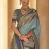 Blue traditional silk saree crafted with print work. The saree comes with a matching blouse.