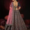 Blue velvet embroidered bridal lehenga choli, delicately crafted with, sequin, stone and diamonds. Comes with a matching soft velvet lehenga, choli and net dupatta.