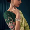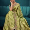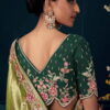 Bright green pure silk wedding saree, designed with thread, zari work enhanced by fancy lace border. The saree comes with a contrast matching blouse.