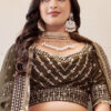 Brown embroidered net lehenga choli made with slub velvet type georgette with sequins work. Comes with matching lehenga choli and dupatta.