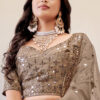 Brown embroidered net lehenga choli made with slub georgette with sequins work. Comes with matching lehenga choli and dupatta.