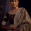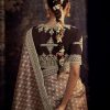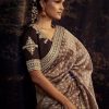 Brown fancy fabric embroidered wedding saree designed with thread and intricate border work. The saree comes with a matching blouse.