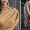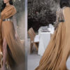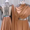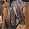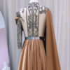 Brown sheer back Luxury A-Line Heavy Evening Dress, beautifully hand crafted together with embroidered beaded work patterns all over the dress.