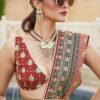 Burnt red smooth silk woven lehenga choli crafted with royal themed print, stone and mirror work. Comes with matching lehenga choli and dupatta.