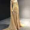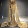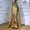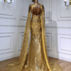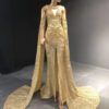 Cape Sleeve Sequinned Beaded Evening Dress, beautifully hand crafted together with embroidered beaded work all over the dress.